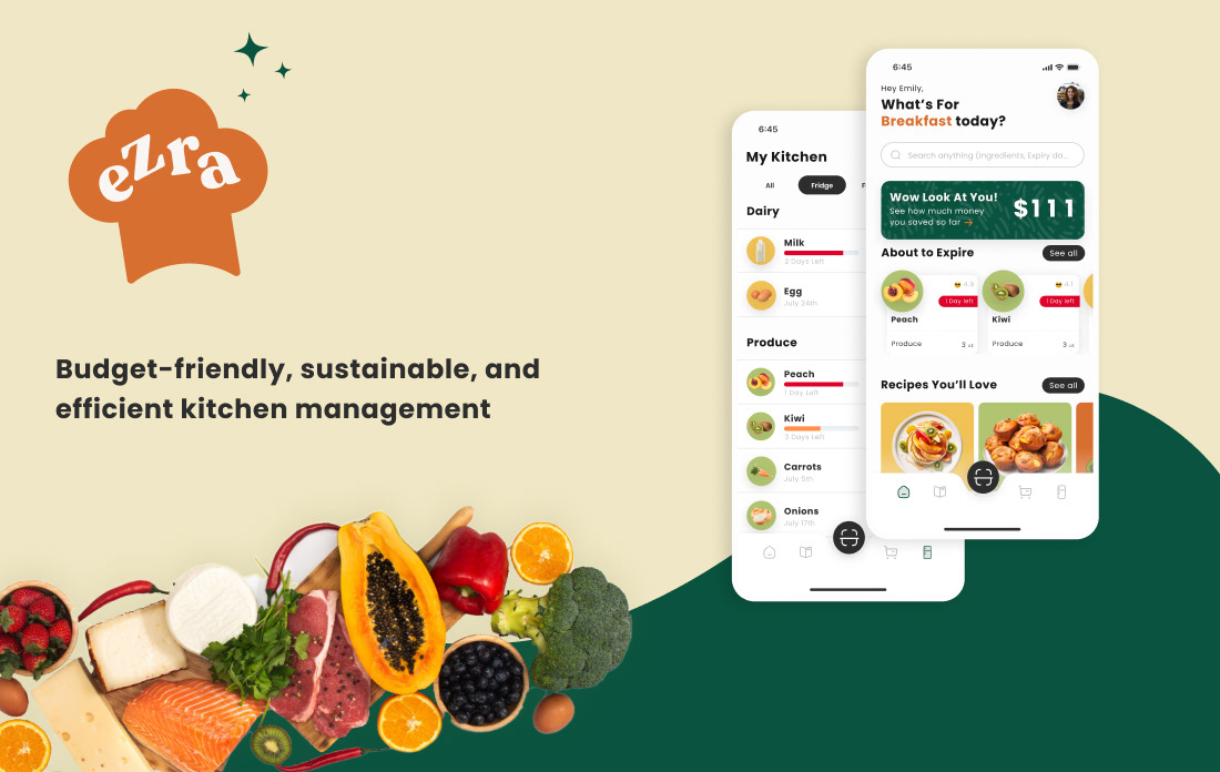 Empowering users with AI and AR technologies, Ezra transforms kitchen management. By offering personalized planning and monitoring of groceries, Ezra accommodates users' preferences and dietary needs, fostering an efficient, budget-friendly approach to food consumption. These features translate to significant cost savings and sustainable habits, enhancing users' overall lifestyle.