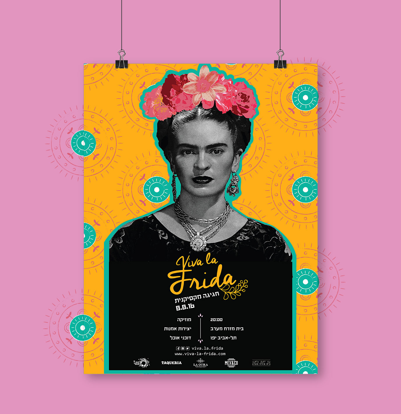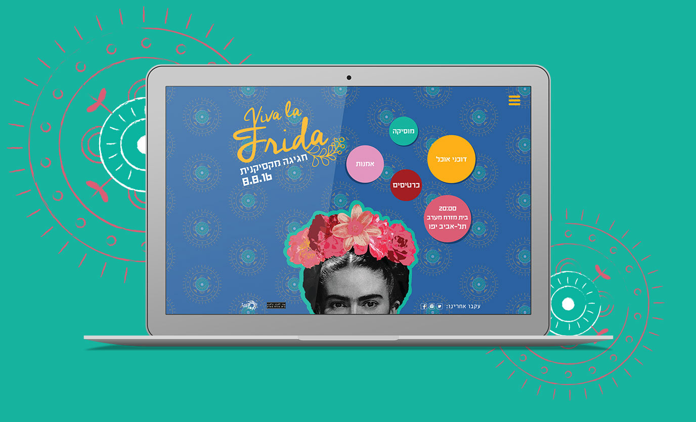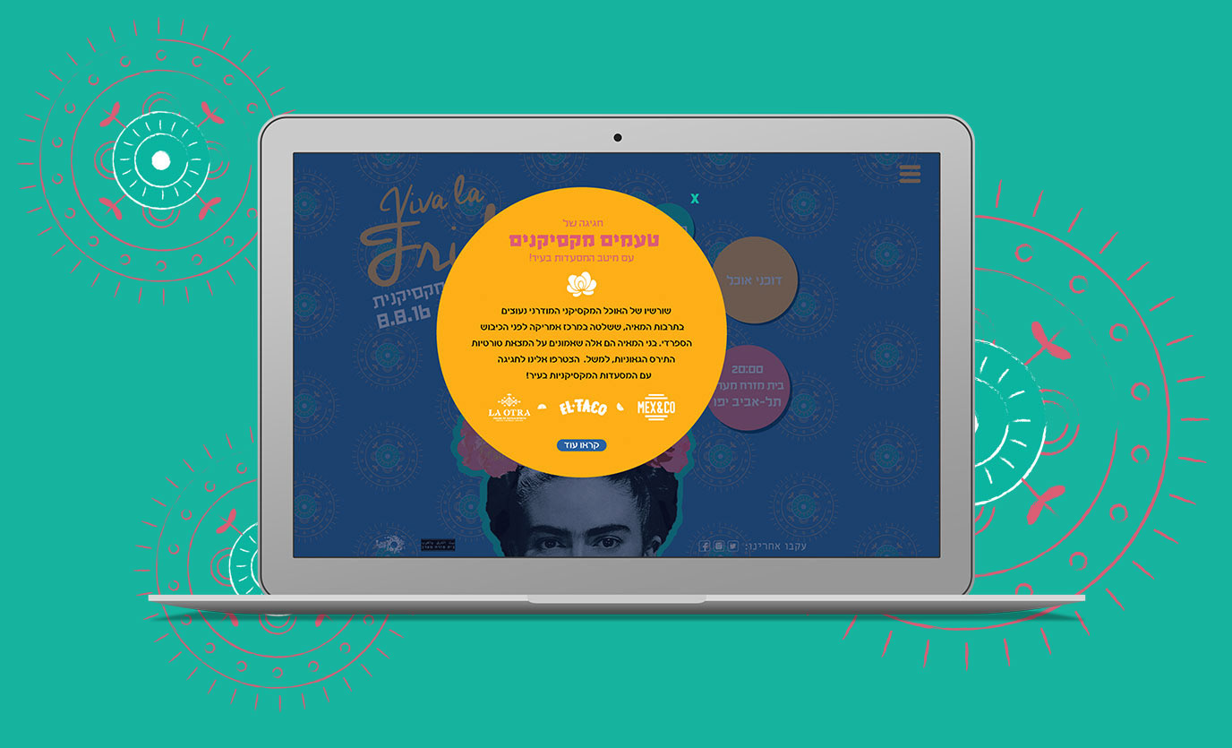 Mexican fiesta! Tel-Aviv's top mexican resturants, artists and musicans participated on a special evening for Frida Kahlo. in this procject i've designed minisite, poster and a rollup.